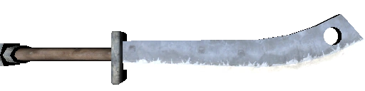 The Holed Sabre is essentially a Horse Chopper with a hole cut out of it. This makes it slightly lighter and presumably gives it an extra bonus to Melee Defence . Regularly used by Mercenaries .