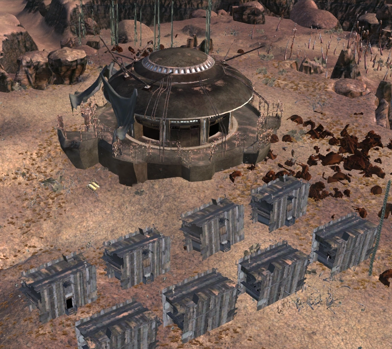 This outpost is made up of Wallhouses (presumably acting as barracks) and a Faction HQ. Two of the Wallhouses are for sale.