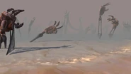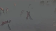 It is implied that when the humans became fearful or had no use for their creations, they marched the skeletons into a quarry they dug for themselves. Afterwards, the humans (or perhaps skeletons under their command?) filled it with some sort of chemical agent, ultimately "killing" or destroying/freezing most of them where they stood. This theory of the use of chemicals is reinforced by the thick white fog that surrounds Obedience and the islands, as well as the hazardous atmosphere that forces people to wear masks. Likely it was similar to a cryogenic compound or liquid hydrogen, which gave off a deadly gas as time went on.