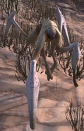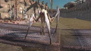 They are large tan insectoid or arachnoid creatures with long, multi-jointed legs and a tiny, creepy head. They hunt anything nearby with high cutting damage attacks from their pointy legs, and they share their smaller cousins' ability to "eat" their prey alive by draining its hunger bar.