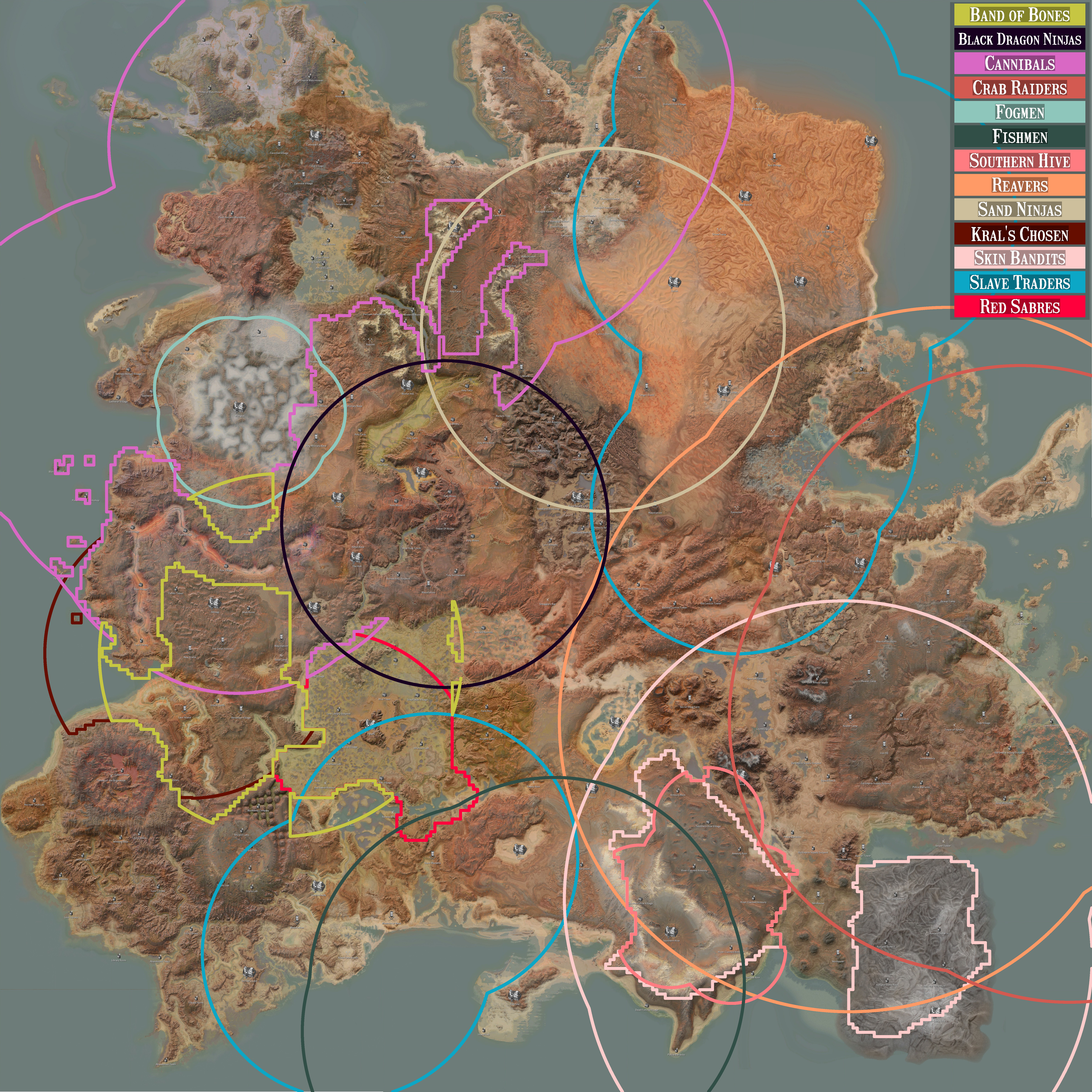 | These towns, outposts, and other locations are controlled by this faction.